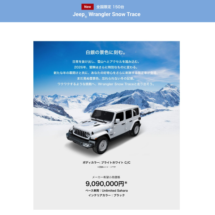 雪山の世界観と Jeep の冒険性を融合させた、冬の特別モデルです☃️🤍
